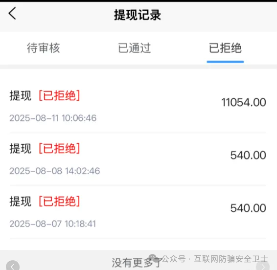平台展示的 "持仓明细"" 浮动收益 " 均为后台修改的数据,资金从未进入证券市场。技术追踪显示,用户充值资金 72 小时内经虚拟币场外交易转入柬埔寨赌场筹码池,8 月 11-12 日单日转移资产超 3700 万元。