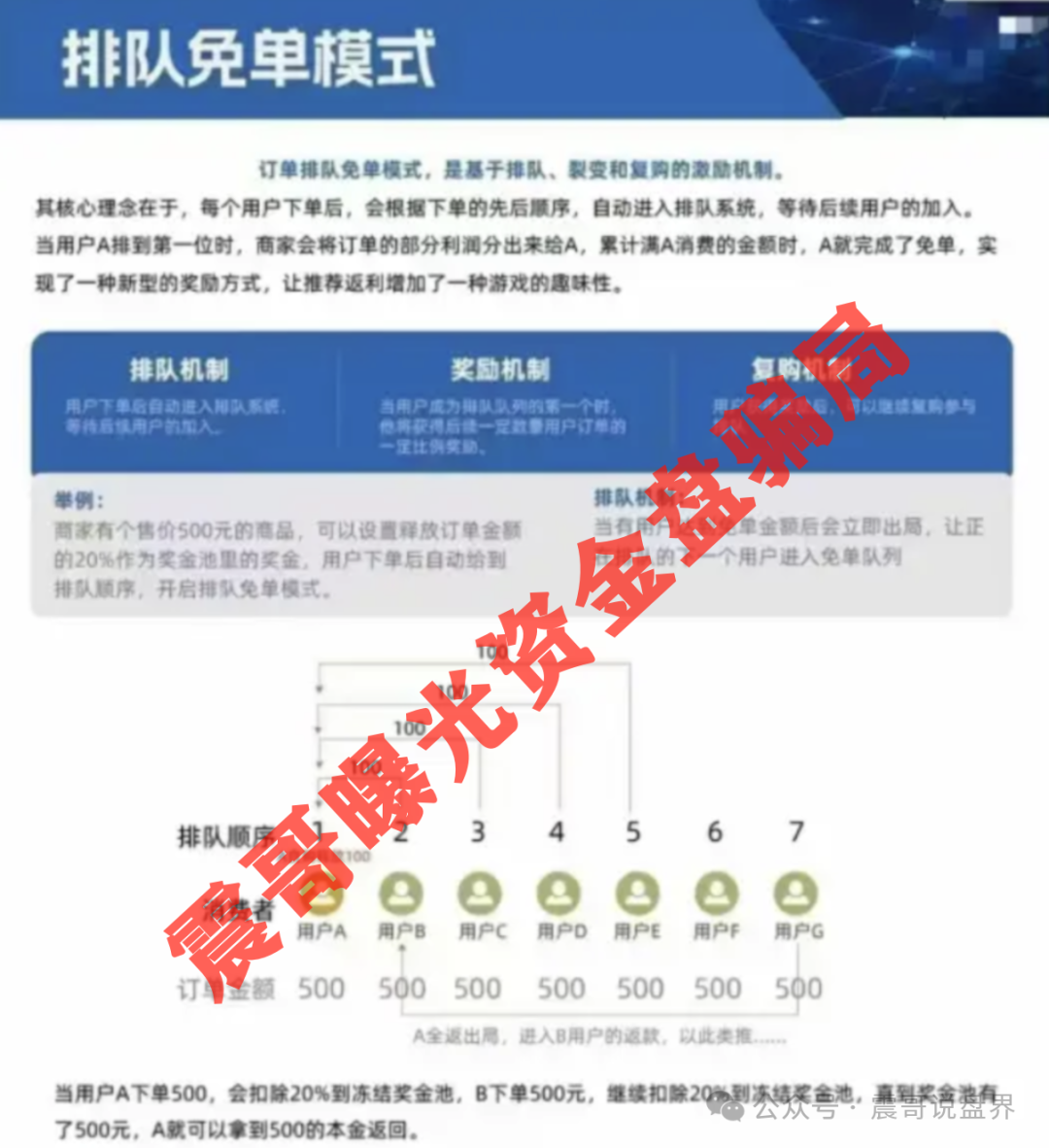 这帮人玩得挺花:花20块钱买袋水,平台抽10块放进返利池,前面排队的人就能拿钱。说白了就是后面人给前面人买单。他们还搞了个2.8万押金租水机的套路,美其名曰"合伙人"。更骚的是把大订单拆成小单插队,还搞什么直推加速、复购加速,这不就是变相传销嘛!