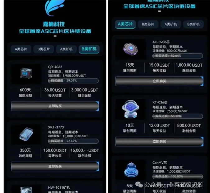 嘉楠科技是打着AI矿机旗号的资金盘,以购虚拟矿机获高额分红吸引投资者。实则是庞氏骗局,无真实盈利,靠新资金付旧收益。真正嘉楠是正规上市企业,此盘知识冒用,套牌骗局。一旦资金链断,投资者将血本无归。