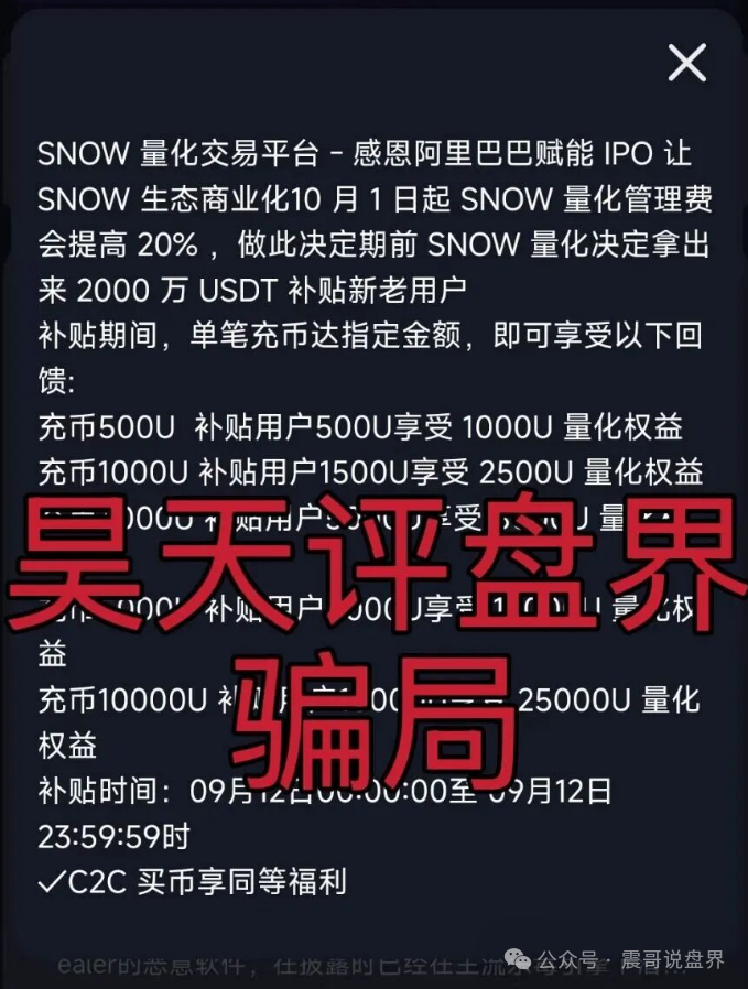 【雪花Snow】 Ai量化资金盘诈骗,无法提现,圈钱千万,警惕再次收割!