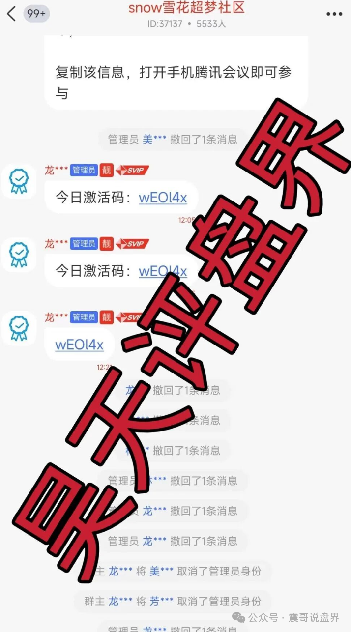 看看这吃相:群里紧急禁言,专挑不懂行的小白忽悠续命。分红盘玩到这份上也是绝了,开盘没俩月就急吼吼单割,连千万盘子都兜不住,穷疯了是吧?震哥把话撂这儿:今晚服务器一关,这群人绝对连夜卷款消失!