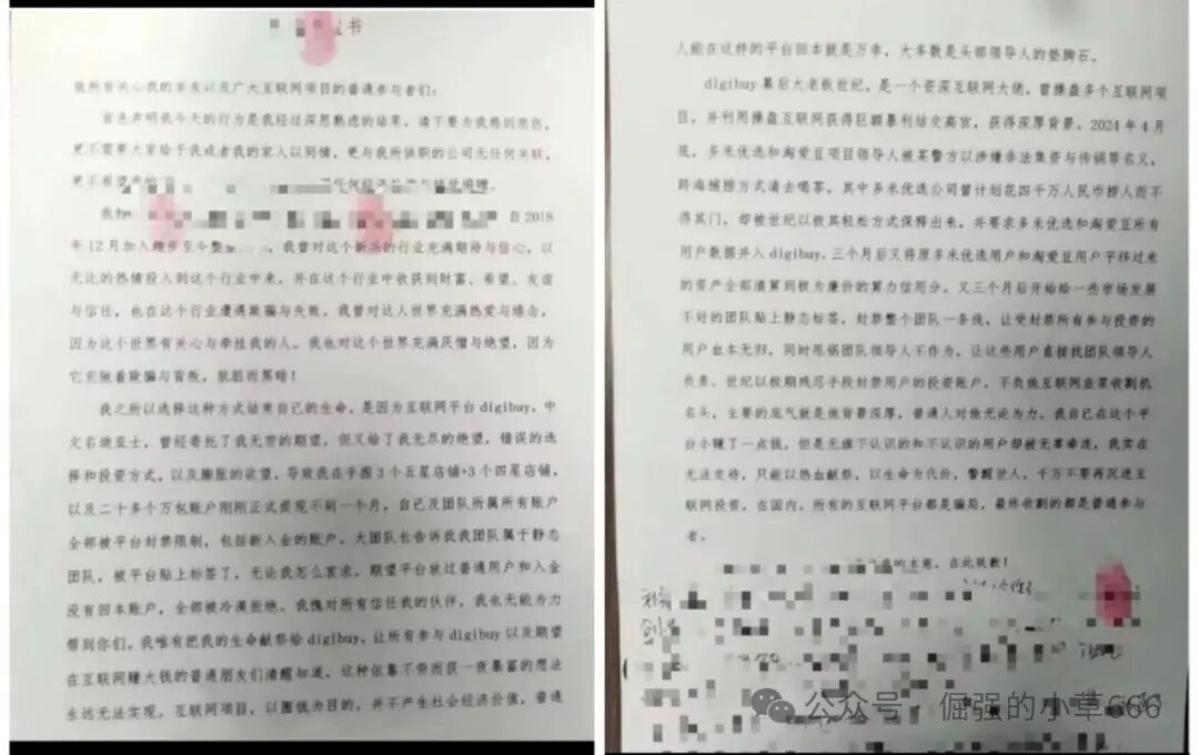 面对增长乏力的困局,平台于2024年7月采取极端手段——大规模封禁仅参与静态收益、未完成推广任务的账号。此举不仅违背基本契约精神,更暴露出其运营模式的根本缺陷:收益并非来自运营或产品,而是完全依赖“人头裂变”。大量用户账户资产被单方面清零,引发强烈舆情反弹。而在这场集体愤怒中,一个令人痛心的悲剧悄然发生:一名来自河南的团队长,因投入数十万元积蓄、带领数百人参与项目,账户被无预警封禁,所有收益归零,背负巨大债务与团队指责,精神崩溃之下,在家中留下三封遗书,最终选择结束生命。