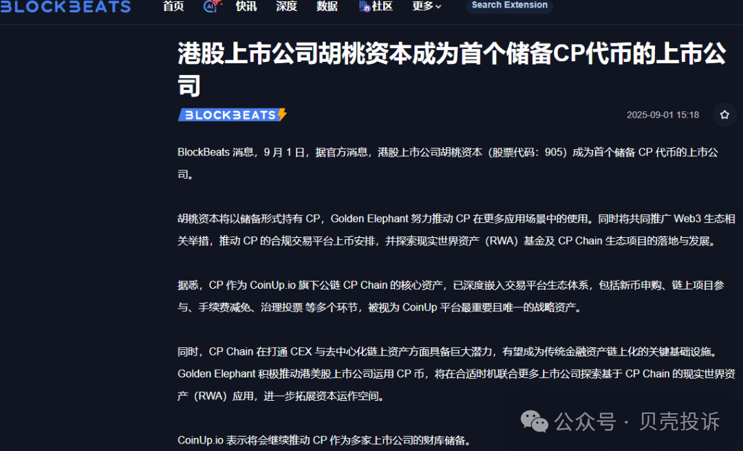 而这场号称“港股首个加密储备”的闹剧,最终以APP无法打开、提现通道关闭的方式收场,留下的是暴跌73%的CP代币和清零的流动性。这种资本游戏就是这样,人家不断公布利好消息,推动币价上涨,用幻想的财富泡沫,引你入局,当你的钱打进交易所资金池的那一天,结局其实就已经注定了。