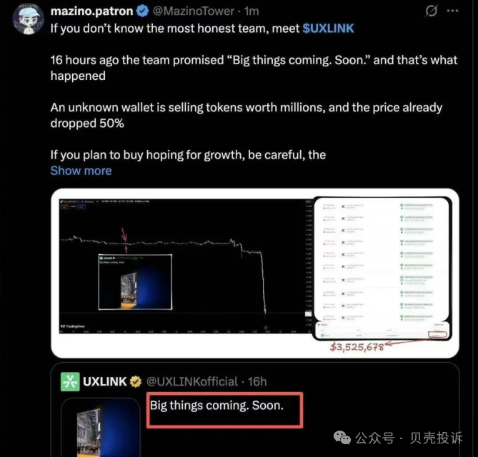 前面项目方还说要搞个大的,现在看来也是很幽默了,拉了个大的,让散户吃下去。
