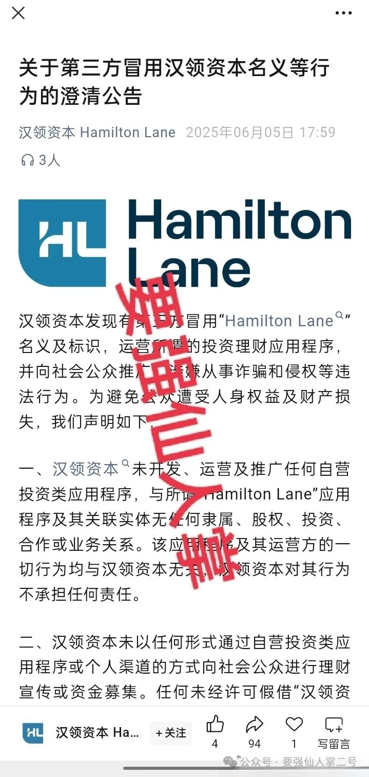 早在今年六月份“汉领资本”官方就曾发布澄清声明,明确表示公司没有任何投资APP。这一信号本就该敲响警钟,可仍有投资者被虚假收益迷惑。事实上,目前市面上所谓的“汉领资本”投资平台,完全是骗子打造的资金盘骗局。