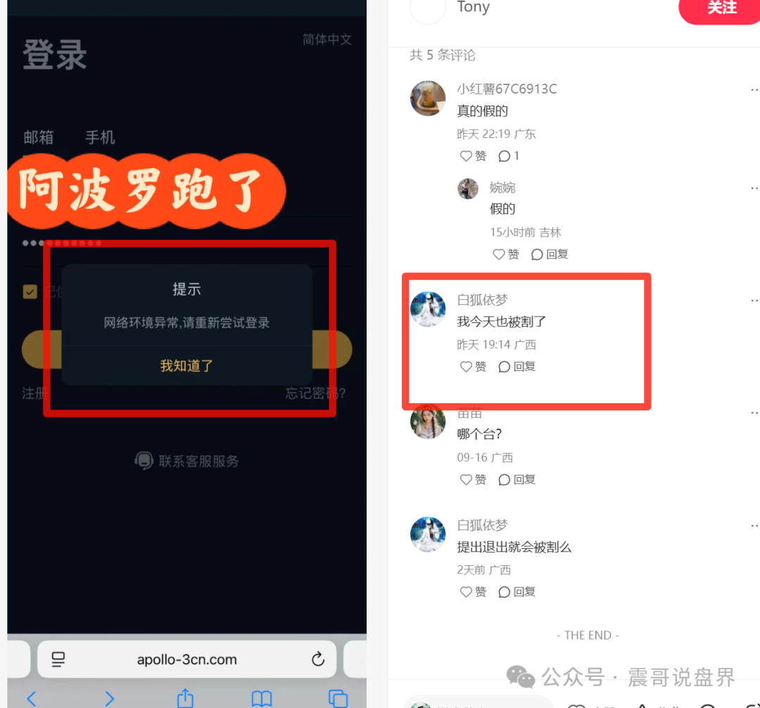 兄弟们注意了!最近好多粉丝让震哥扒一扒这个阿波罗交易所,结果不查不知道,一查吓一跳!这根本就是个合约跟单的资金盘骗局啊!