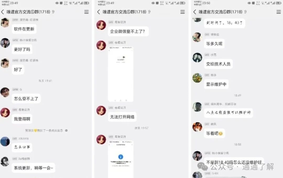 昨天下午,“唯遗商城”突然弹窗公告:“系统升级4小时,暂停提现”。韭菜群里还在调侃:“上次升级才2小时,这次要放大招啊!”然而4小时后,公告变脸:“升级需12小时”,恐慌开始蔓延。