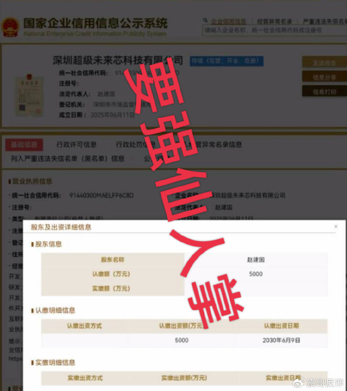 一、吹的千万实缴,实际早撤资跑路项目方吹自己实缴资金1000万,还晒什么验资报告。结果震哥一查企业信息,这笔钱早就被全部抽空,现在实缴金额为0!连注册资金都能作假,你还指望他给你分红?这摆明就是画饼圈钱,随时准备卷款消失。