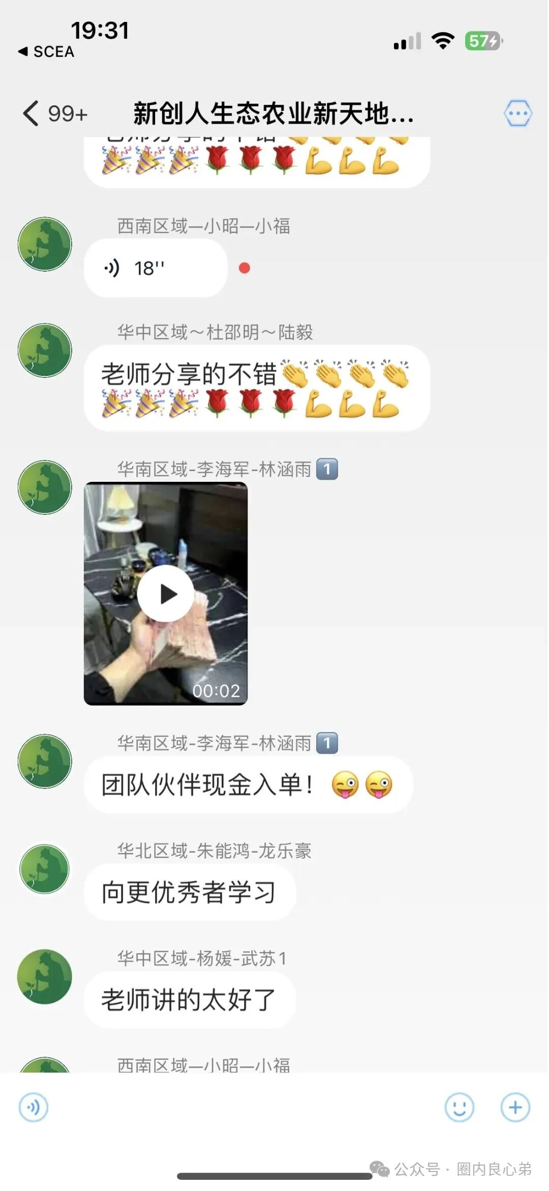 新创人属于内部聊天软件和群聊,毕竟现在不能光明正大干诈骗的事情,微信聊天都是监管比较严格,索性现在一般非法的资金盘都是有各自的聊天软件,一般有导师定期洗脑和充值信仰,各种晒单,营造该平台出赚钱的真像。