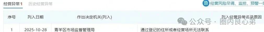 目前成都维尔利窝点公司,已经经营异常,相关监管部门已经进行公示,跑路的前奏。
