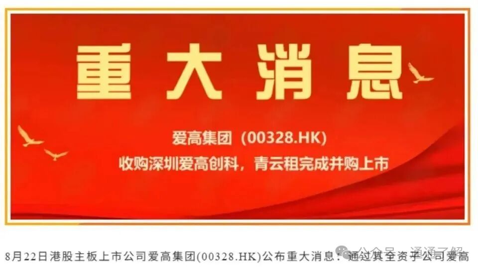 光鲜的包装是青云租骗取信任的第一步。平台在其小程序和宣传材料中醒目标注“00328.HK旗下品牌”、“国资参股”、“官方正品保证”等信息。2025年8月,青云租更是宣布被港股上市公司爱高集团(00328.HK)收购,成为其旗下成员企业。