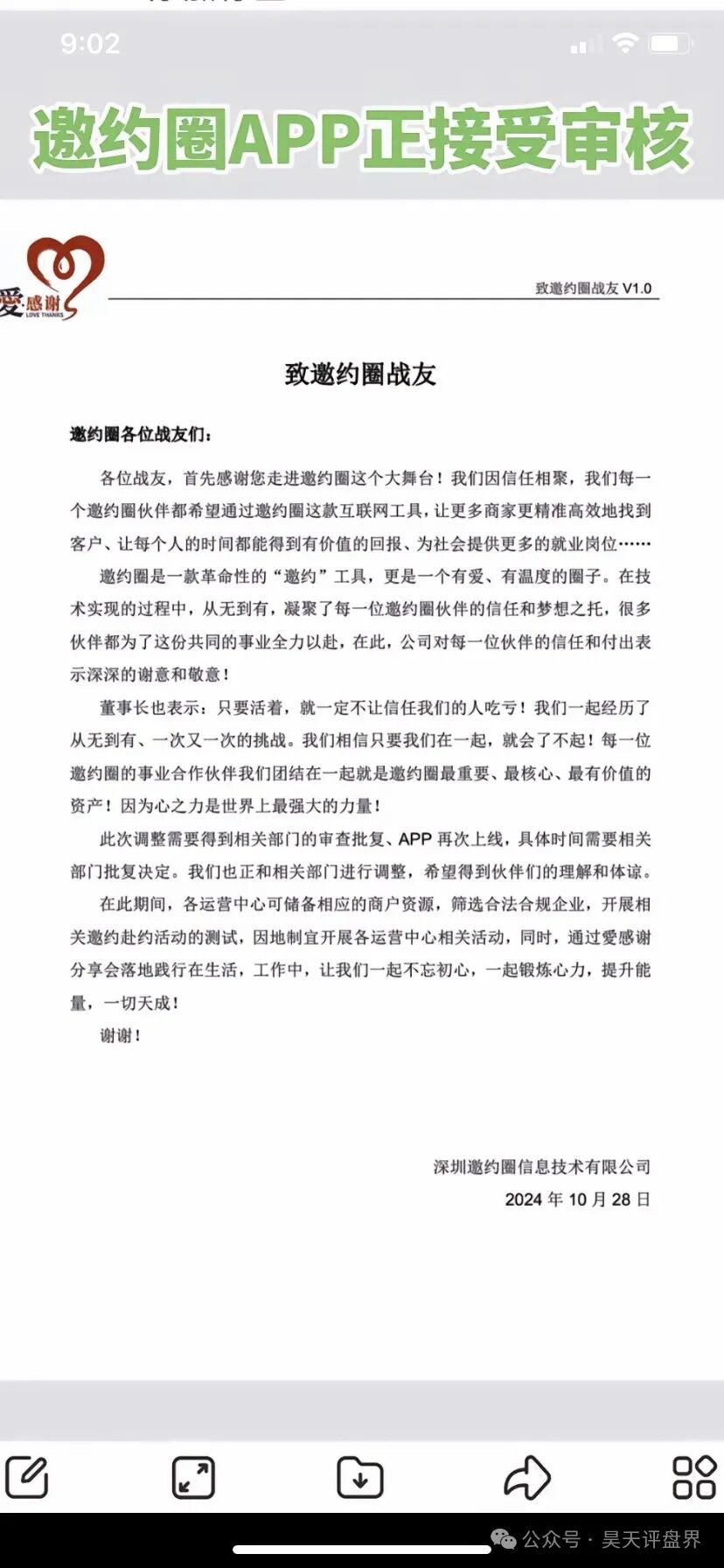 “邀约圈”这个资金盘昊天之前曾多次预警及爆料,相信看过的粉丝都没有被骗,这个骗局很简单就是单纯的拉人投资999元,然后拿推荐奖,说推广用户奖最终可分红每年50万?模式就不用昊天重复发了之前曝光过不懂的可以看往期文章,直接上硬核资料:据受害者向昊天爆料目前app已经关网了,200万会员,每人999,大家算算多少钱吧…