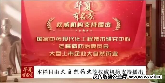 节目一开场,“国家中药现代化工程技术研究中心”“老慢病防治委员会”“大型上市企业大自然药业”“江西省药物研究所”等权威机构名号滚动播放。