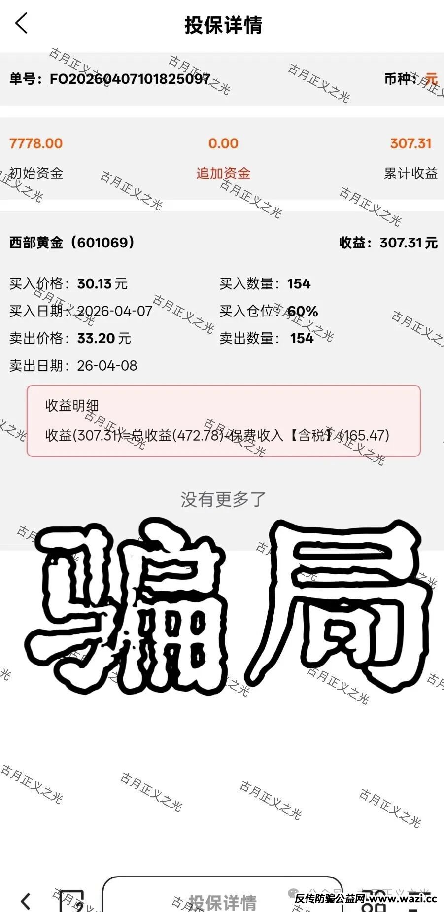 近期,小编发现了一个名为丝路保险(丝路股保)的平台,平台以炒股亏损包赔、保本高收益、拉人头返利等为噱头,吸引群众投资参与,该平台宣称所谓“股票投资保险产品”,称与知名证券公司合作,诱导用户在指定渠道充值,由所谓的“专业策略师”统一操盘购买股票,并承诺若股票投资发生亏损,将进行全额理赔,若盈利,则抽取一定比例作为保费,所谓的“个股保障”产品属于虚假宣传,本质是非法集资、金融诈骗。此类活动以高收益为诱饵,资金无监管、风险极高,极易造成参与者财产重大损失。股市投资有风险,并不存在保本保收益、亏损包赔的合法金融产品,月收益高达120%,韭菜不停的被割,马上崩盘跑路!