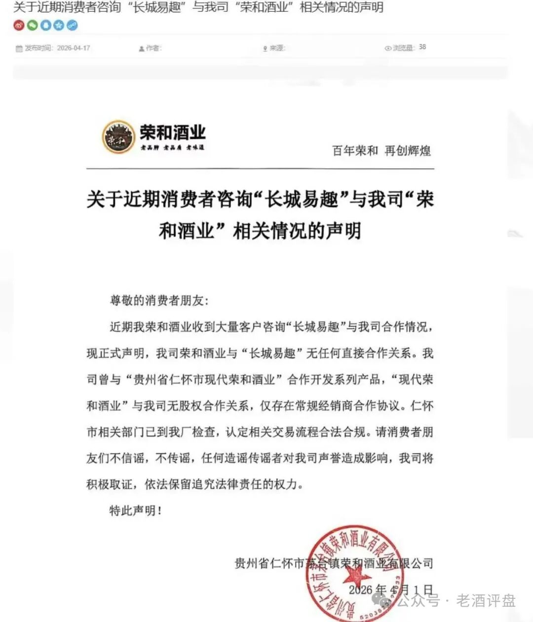 • 荣和烧坊等合作方已发布声明,与长城易趣无任何关联,彻底揭穿其虚假合作谎言。